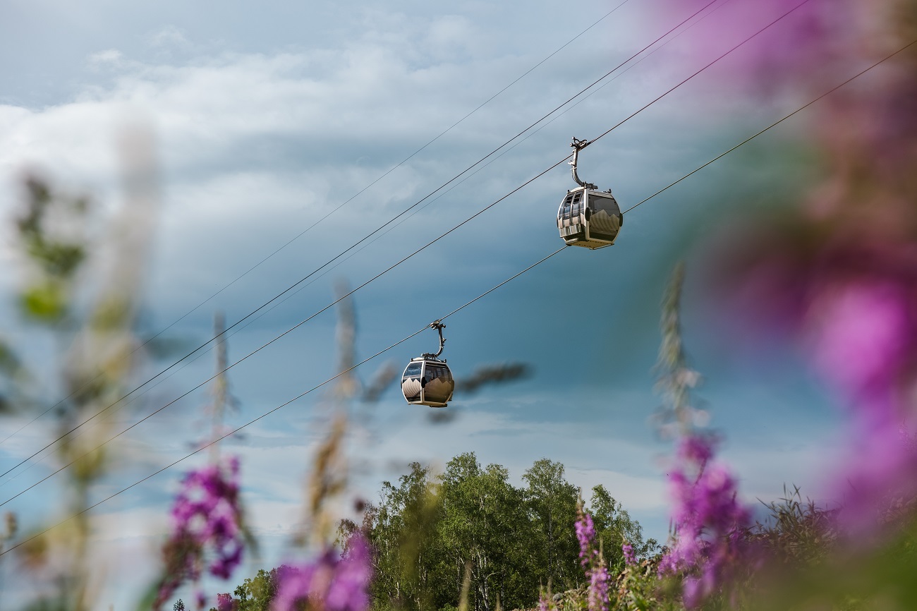 Отправляйтесь в парк «Хранитель Большого Алтая» на современных канатных дорогах, наслаждаясь горными пейзажами с высоты.
